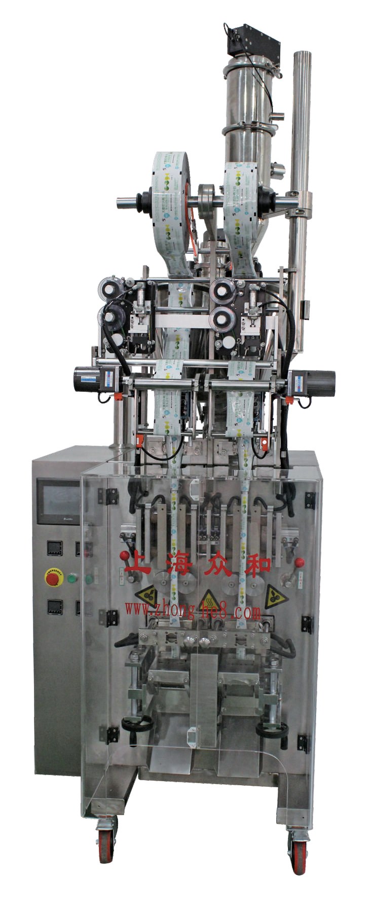 包裝原理:每列單獨(dú)卷膜;一個(gè)計(jì)量裝置分2個(gè)計(jì)量下料包裝:可以單獨(dú)開(kāi)任意一列,也可以雙列一起工作